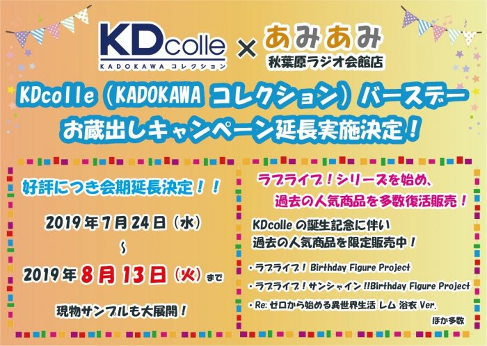 KADOKAWAのフィギュアブランド「KDcolle(KADOKAWAコレクション)」の誕生を記念したバースデーイベントが公表につき延長決定! 過去の人気フィギュア展示&蔵出し販売いたします‼